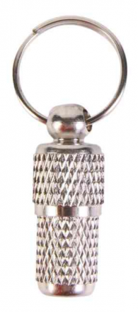 Wykonany z metalu identyfikator przyczepia się do obroży psa, należy w nim schować małą