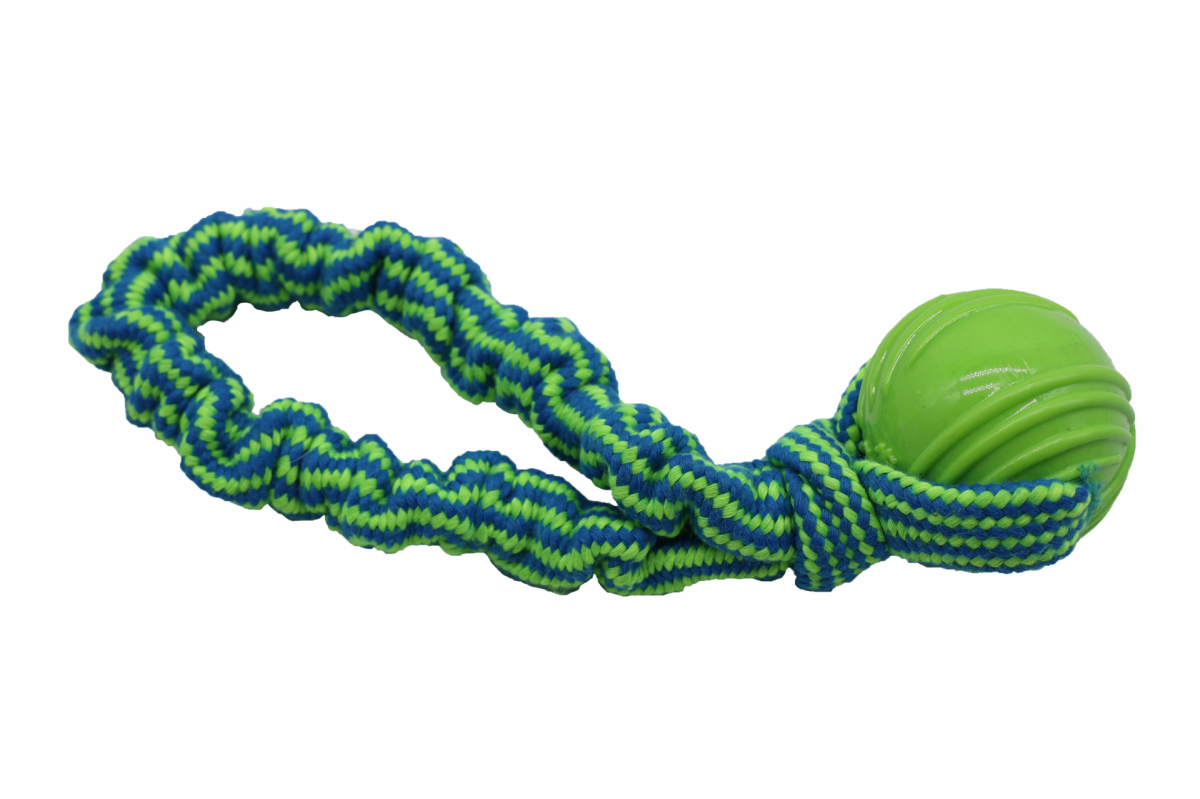 Bubu Pets | Zabawka dla psa sznur pleciony pętla z piłką jeżową GREEN NEON 27cm Waga: 120g Wymiary: 27cm Materiał: poliester, TPR czytaj więcej