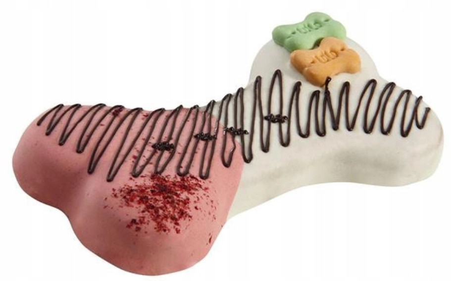 Oryginalny prezent urodzinowy dla Twojego czworonożnego pupila. Tort w kształcie smakowitej kości o smaku orzechowo -czekoladowym. Wykonany został z naturalnych składników. Całkowicie bezpieczny dla życia i zdrowia zwierząt. Doskonałe uzupełnienie diety, a także świetny sposób na nagradzanie. Tort zapakowany jest w piękny kartonik i hermetyczną folię, zapewniającą świeżość przysmaku.