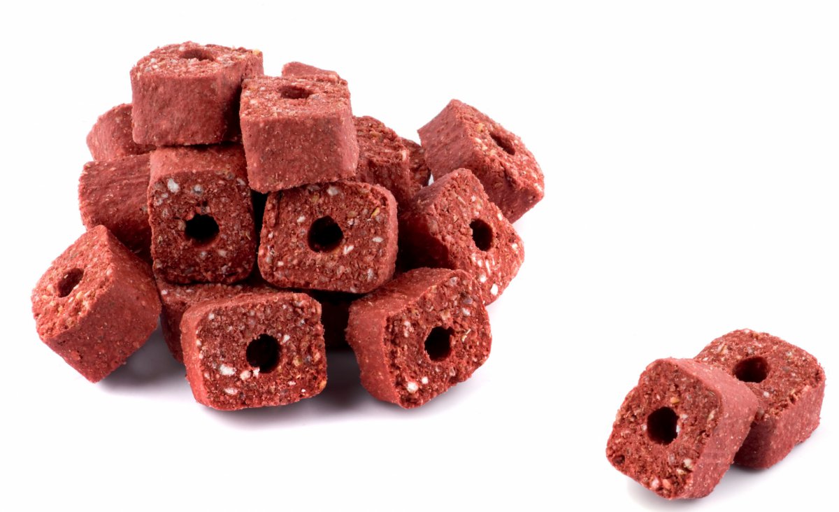 Krążki z dodatkiem wołowiny, kurczaka lub jagnięciny to pyszne i łatwo przyswajalne przekąski. Dzięki swojej miękkości idealnie nadają się dla wszystkich psów, nawet małych lub starszych, które mają problemy z gryzieniem. Mięsny smak oraz zachęcający zapach sprawiają, że psy je chętnie zjadają. Przekąska sprawdzi się jako nagroda podczas treningu.