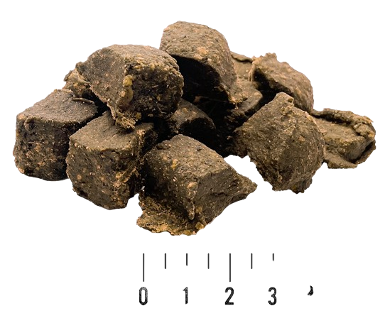 Skład analityczny: białko surowe 30%, tłuszcz surowy 15%, popiół surowy 7,5%, włókno surowe 1,8%, wilgotność 25%, Omega-3 0,15%, Omega-6 2,1%
