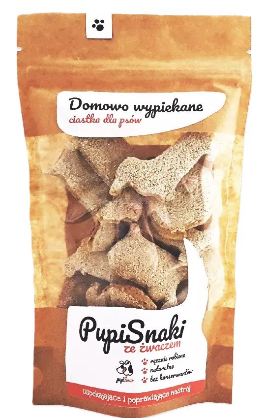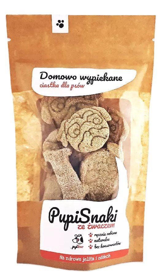 PUPISnaki to ręcznie wypiekane, lekkostrawne ciasteczka stworzone z myślą o psach wszystkich ras i w każdym wieku – od szczeniąt po seniorów. Idealne jako codzienna przekąska lub nagroda podczas treningu.
