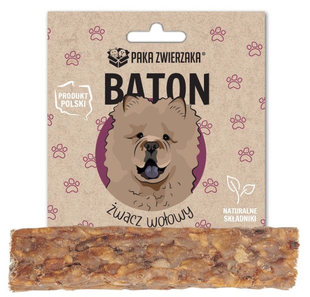 Baton wykonany ręcznie, pozbawiony klejów i barwników. Stworzony tylko z naturalnych składników najwyższej jakości. Bezpieczny dla dziąseł psa, nie zawiera ostrych elementów.