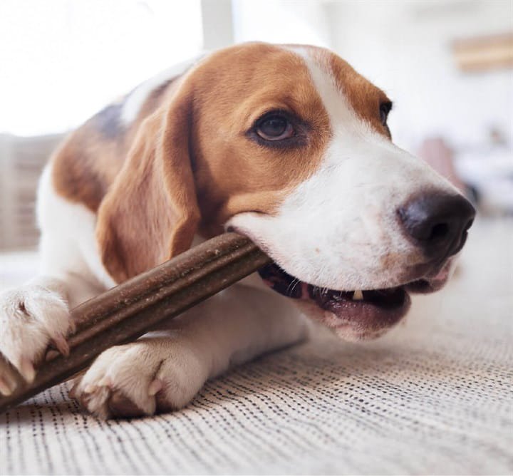 Mięta zawarta w przysmakach dental usuwa nieprzyjemny oddech z psiego pyska.