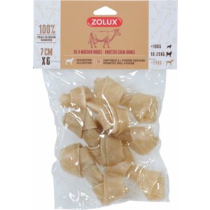 Przysmak dla psów w postaci białej kości wiązanej to idealne uzupełnienie codziennej porcji pożywienia. Wykonana w 100% ze skóry bydlęcej kość zajmie zwierzę na długi czas, wpływając przy tym korzystnie na higienę jego jamy ustnej. Tego rodzaju przysmaki zaspokajają naturalną u psów potrzebę gryzienia i wzmacniają mięśnie szczęk.