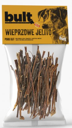 Jelito cienkie wieprzowe marki BULT to naturalna przekąska składająca się ze starannie wyselekcjonowanych składników pochodzących od renomowanych polskich dostawców. Innowacyjny i w pełni ekologiczny proces, czyszczenia oraz suszenia zapewnia wysoką zawartość niezbędnych minerałów oraz unikalne doznania smakowe, które zadowolą nawet najbardziej wymagającego czworonoga. Przekąska zawiera potrzebne kultury bakterii wspomagające procesy trawienne. Dedykowana jest zarówno dużym, jak i małym psom, stanowiąc wzorowe uzupełnienie diety opartej na suchej karmie marki BULT.