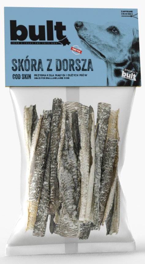 Skóra z dorsza to jeden z najbardziej wykwintnych psich przysmaków dostępnych na rynku. Łatwo przyswajalne białko i kwasy OMEGA-3 to najlepsze rozwiązanie dla psów z problemami alergicznymi oraz czworonogów przechodzących rekonwalescencję. Przysmak stanowi idealny dodatek do suchej karmy BULT. Stymuluje apetyt będąc przy tym doskonałą przekąską do żucia. Skóra z dorsza przeznaczona jest dla psów każdej rasy i w każdym wieku.