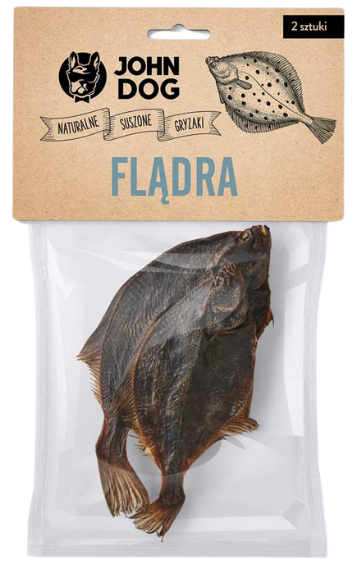 Flądra jest źródłem naturalnego i wysokowartościowego białka. Zawiera również kwasy omega-3 i 6, które korzystnie wpływają na funkcjonowanie układu nerwowego. Przysmak jest chrupiący i o wabiącym zapachu. Jest odpowiedni dla małych i dużych psów. Delikatnie suszony, nie zawiera sztucznych barwników ani konserwantów.