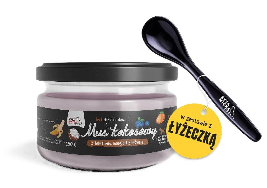 Syta Micha | Mus kokosowy z dodatkiem banana, mango, borówki i prebiotyków | Słoik 150g