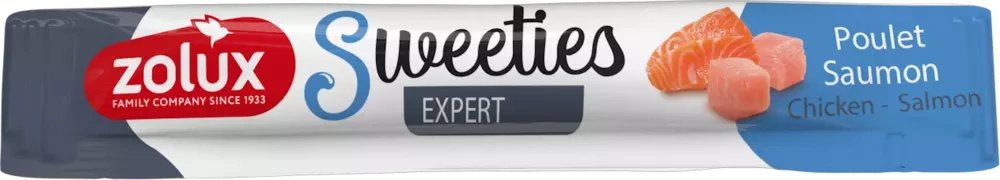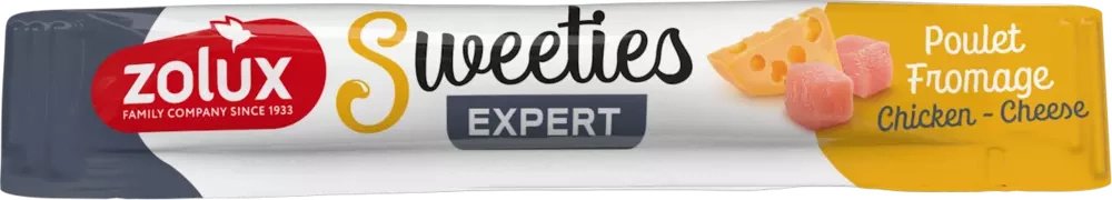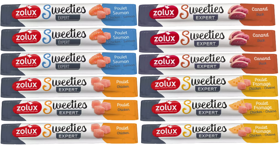 Podawanie takiej ilości smakołyku nie zaburzy równowagi w diecie zwierzęcia. Sweeties dostępne są w 4 wariantach smakowych: kurczak z serem, kaczka, kurczak i łosoś z kurczakiem.