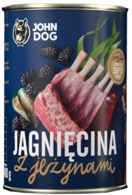 Skład: jagnięcina - 67% (serca, mięso, płuca, wątroba), owoce - 3% (jeżyny), minerały - 1%, mięczaki i skorupiaki - 0,1% (omułek zielonowargowy), algi morskie - 0,1% (Ascophyllum nodosum), olej z łososia - 0,1%