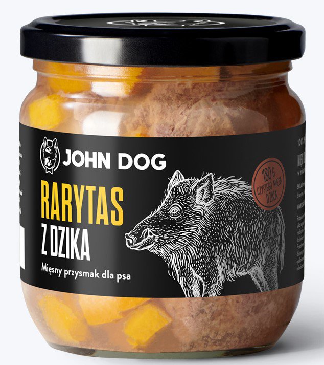 Skład: mięso dzika - 85%, dynia, suszone morskie algi brunatne, naturalny żelujący wyciąg z alg - agar.