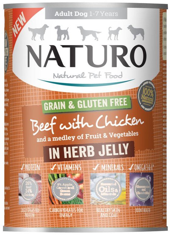 Mokra karma Naturo Grain & Gluten Free dla psów dorosłych.