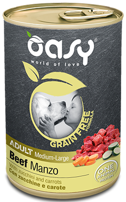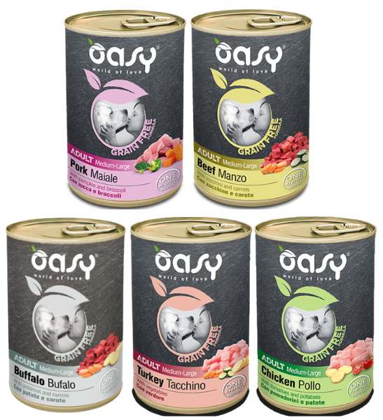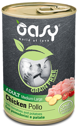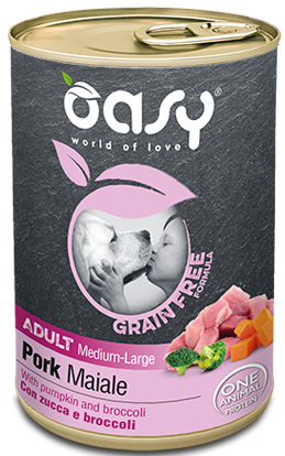 Oasy Grain Free to karma stworzona dla psów dorosłych ras średnich i większych, które wymagają diety o niskim potencjale alergicznym.