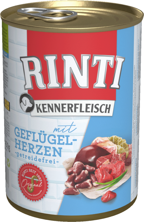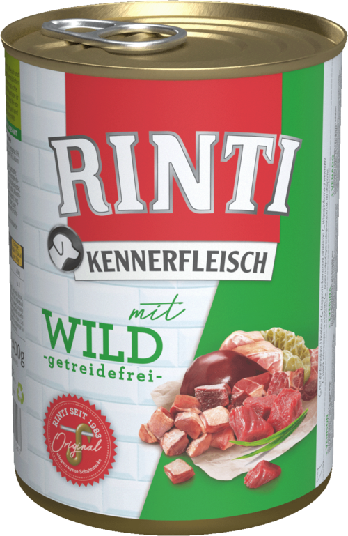 Pies jest z natury typowym mięsożercą, jego trakt trawienny jest biologicznie przystosowany do trawienia mięsa. Pierwotne pożywienie, upolowana zwierzyna, zawierała obok mięsa czystego również podroby takie jak wątroba, żołądek czy płuca. Dlatego pies nie potrzebuje zbóż czy węglowodanów jako źródła energii. Zawarte w mięsie tłuszcze i białka zaopatrują psa w potrzebne kalorie. Wybierzcie dla Waszego psa karmę mokrą RINTI: zawiera ona kawałki czystego, prawdziwego mięsa, jest bez zbóż, ulepszaczy zapachu i smaku, mięsa formowanego czy mączek mięsnych. Ponadto nie zawiera soi i barwników sztucznych. Po prostu czyste mięso!