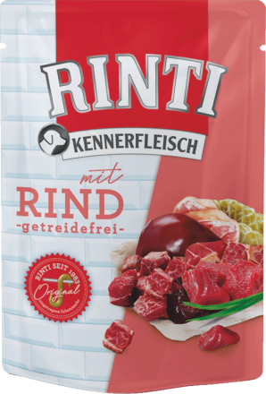 Sprawdzony i popularny przepis Rinti Kennerfleisch jest teraz dostępny również w saszetce 400g. Dzięki łatwemu transportowi i niewielkiemu rozmiarowi opakowanie może być łatwo poddane recyklingowi, nowa stojąca saszetka stanowi atrakcyjną alternatywę dla puszki. Rinti jest bogate w naturalne kawałki mięsa. Plus Omega 3: te wielonienasycone kwasy tłuszczowe są używane do wspierania układu odpornościowego i ochrony komórek. Olej lniany jest bogaty w Omega 3, błonnik buraczany zaś działa regulująco na trawienie.