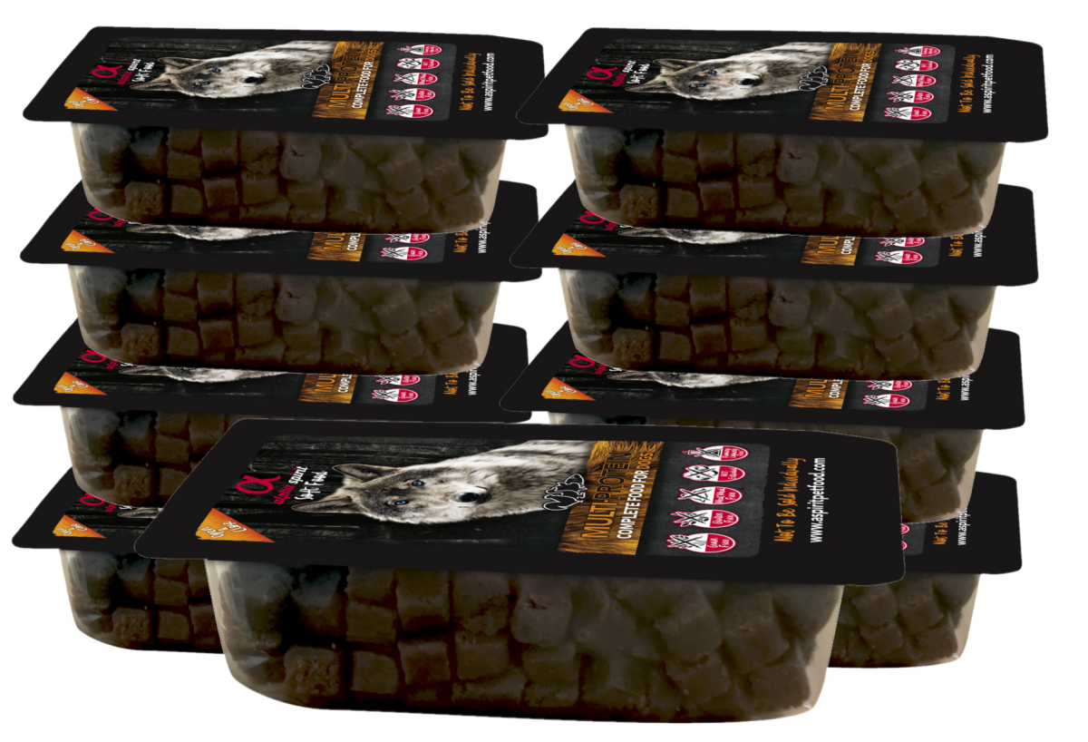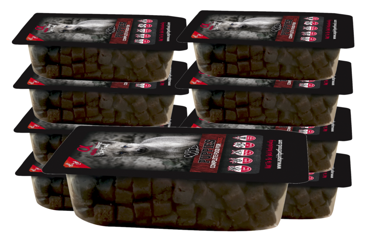 Karma zapakowana jest w pojedyncze tacki po 200g. Daje to wygodę karmienia i gwarancję świeżości. Miękkie kostki i odpowiednio przygotowana formuła sprawiają, że karma odpowiednia jest zarówno dla szczeniąt jak i dorosłych psów, także tych najbardziej aktywnych!