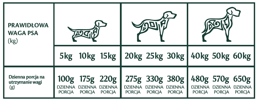 Każdy kawałek karmy Tribal Fresh Pressed waży więcej niż zwykły ekstrudowany krokiet. Dlatego zalecamy odważanie odpowiedniej porcji dla psa za pomocą wagi, aby zapobiec jego przekarmianiu lub wybrać jedną z naszych miarek od lokalnego sprzedawcy lub w sklepie online.