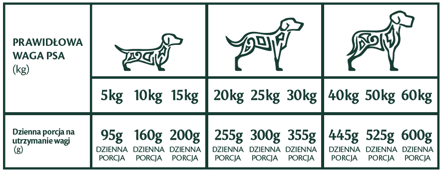 Każdy kawałek karmy Tribal Fresh Pressed waży więcej niż zwykły ekstrudowany krokiet. Dlatego zalecamy odważanie odpowiedniej porcji dla psa za pomocą wagi, aby zapobiec jego przekarmianiu lub wybrać jedną z naszych miarek od lokalnego sprzedawcy lub w sklepie online.