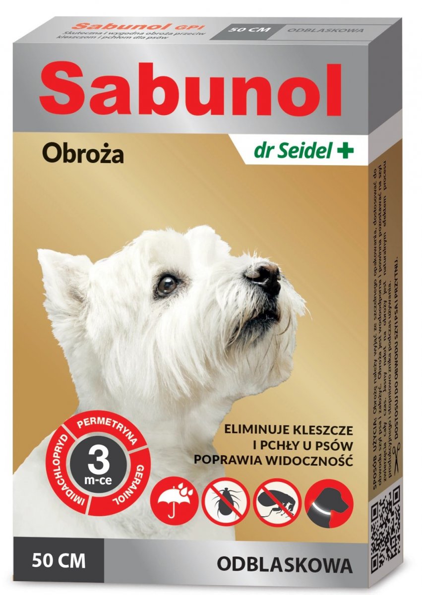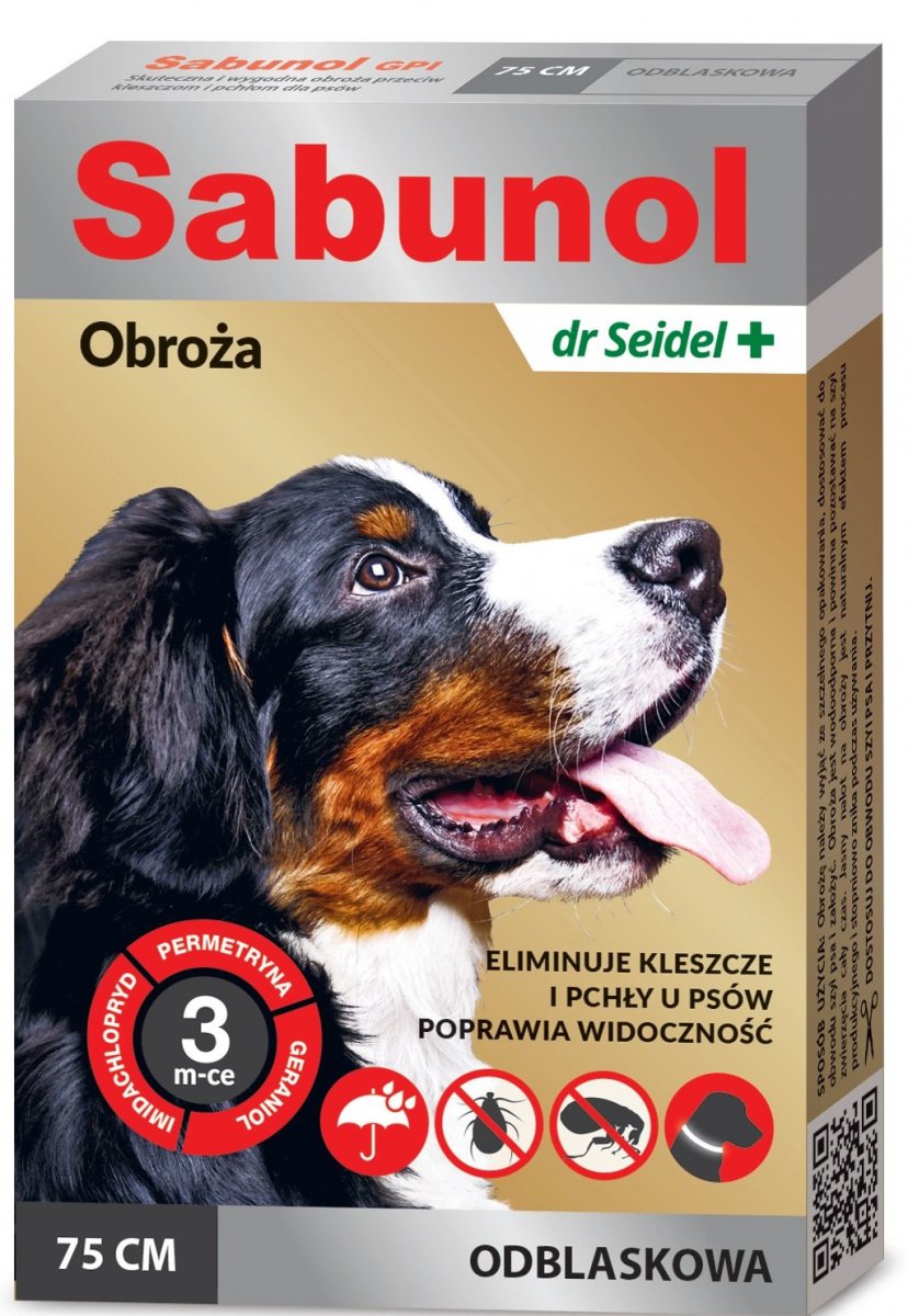 Dr Seidel | Sabunol GPI | Obroża odblaskowa przeciw pchłom i kleszczom dla psa
