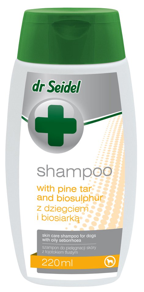 Szampon z dziegciem i biosiarką jest idealnym produktem do pielęgnacji psa w czasie terapii problemów skórnych takich jak łojotok tłusty lub świąd. Zawarta w preparacie biosiarka zwiększa aktywność keratoplastyczną naskórka, co powoduje jego szybsze złuszczanie i odbudowę. Dziegieć ogranicza aktywność gruczołów łojowych, co wpływa na normalizowanie wytwarzania sebum i w efekcie zmniejszenie przetłuszczania się skóry psa. Szampon ma doskonałe właściwości myjące i usuwa nawet silne zabrudzenia. Preparat przywraca włosom naturalny połysk oraz miękkość.